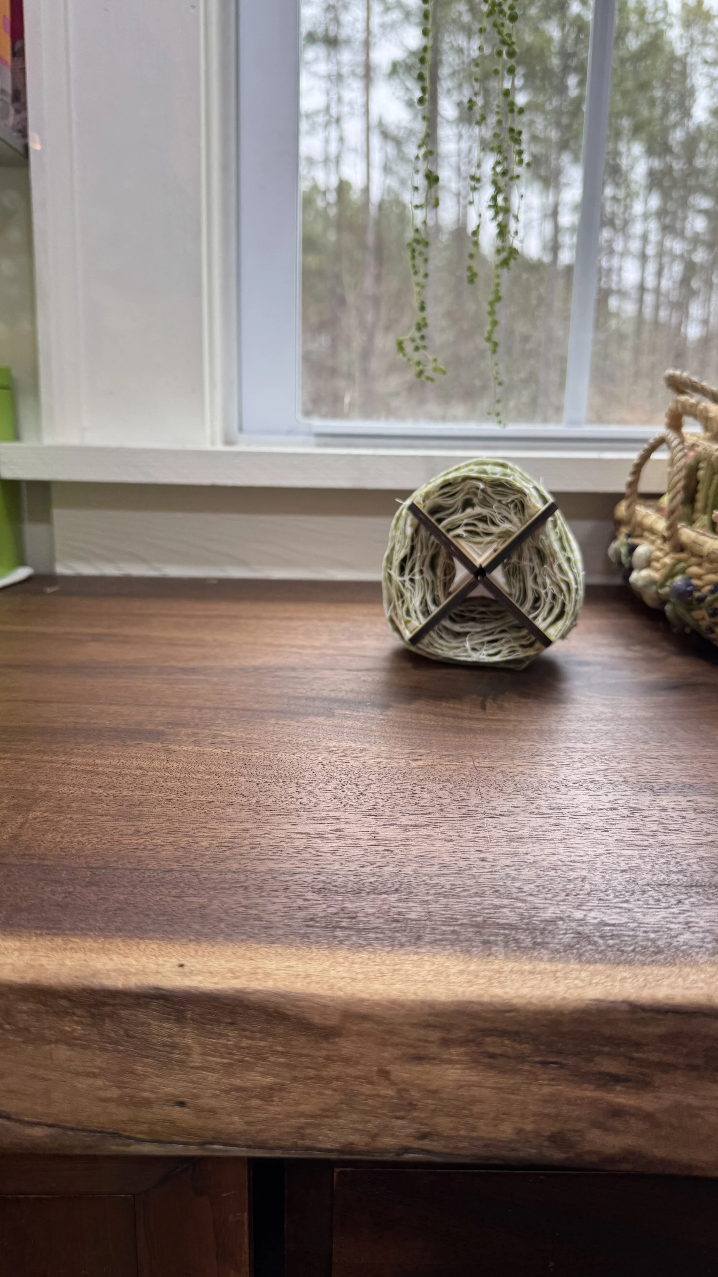 Each binding spool is made from high quality hardwood then sanded and hand finished with food safe oil. Each individual Tulip Pot is 4 ¼ in tall and 3 ¼ in wide. There is an opening cut in one Tulip Pot that is 1/8 in wide and 1 ¾ in tall.
