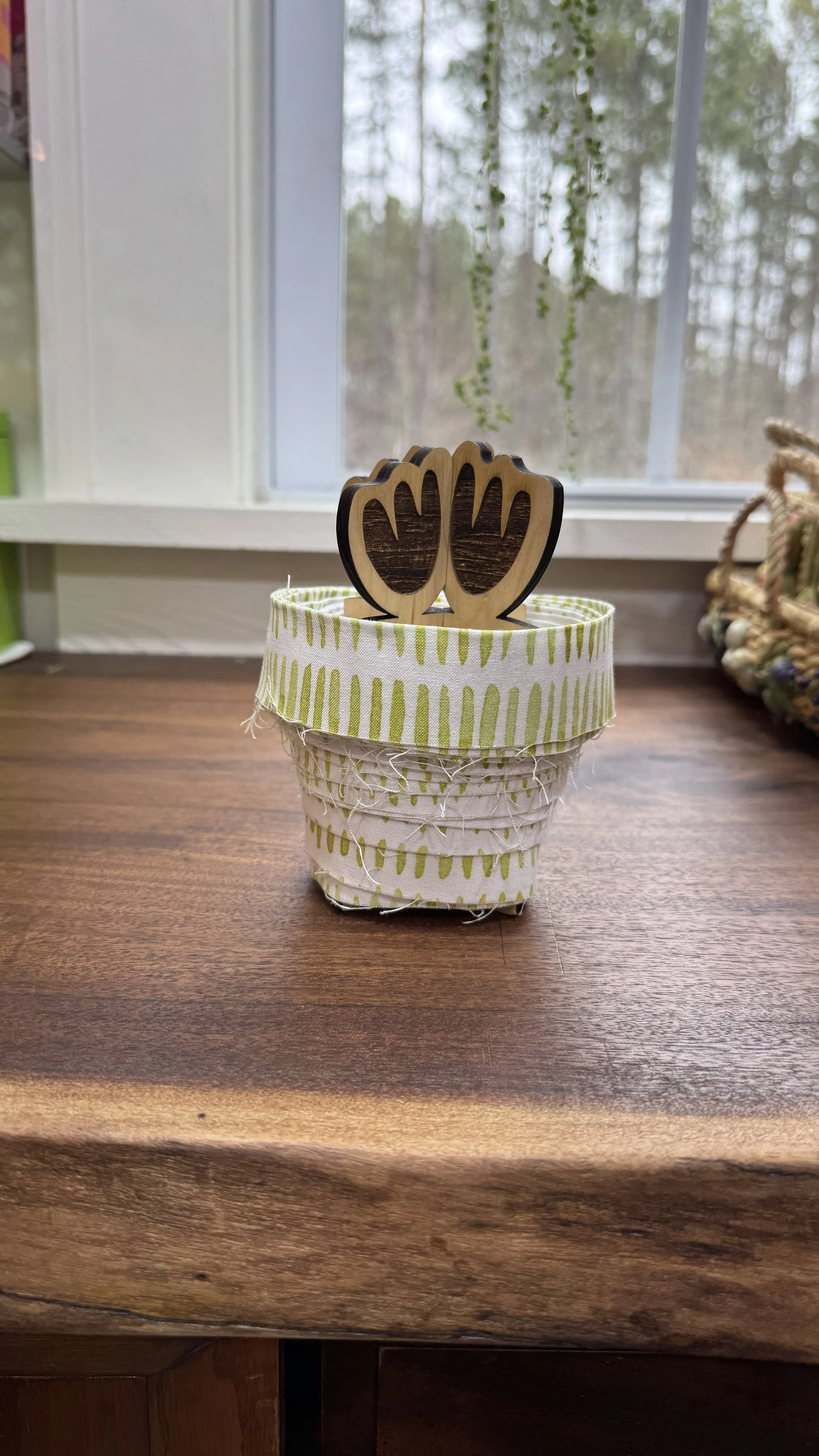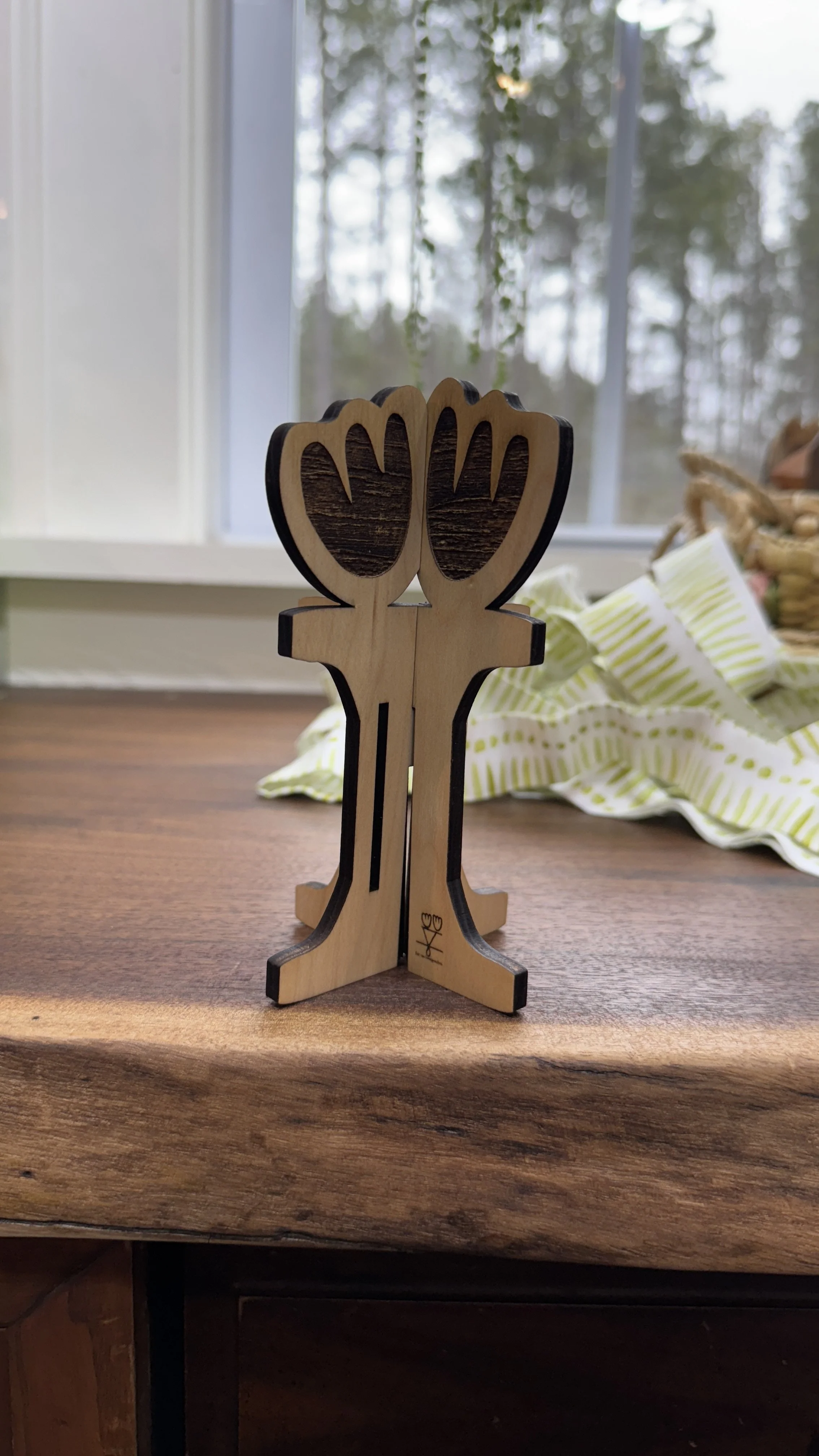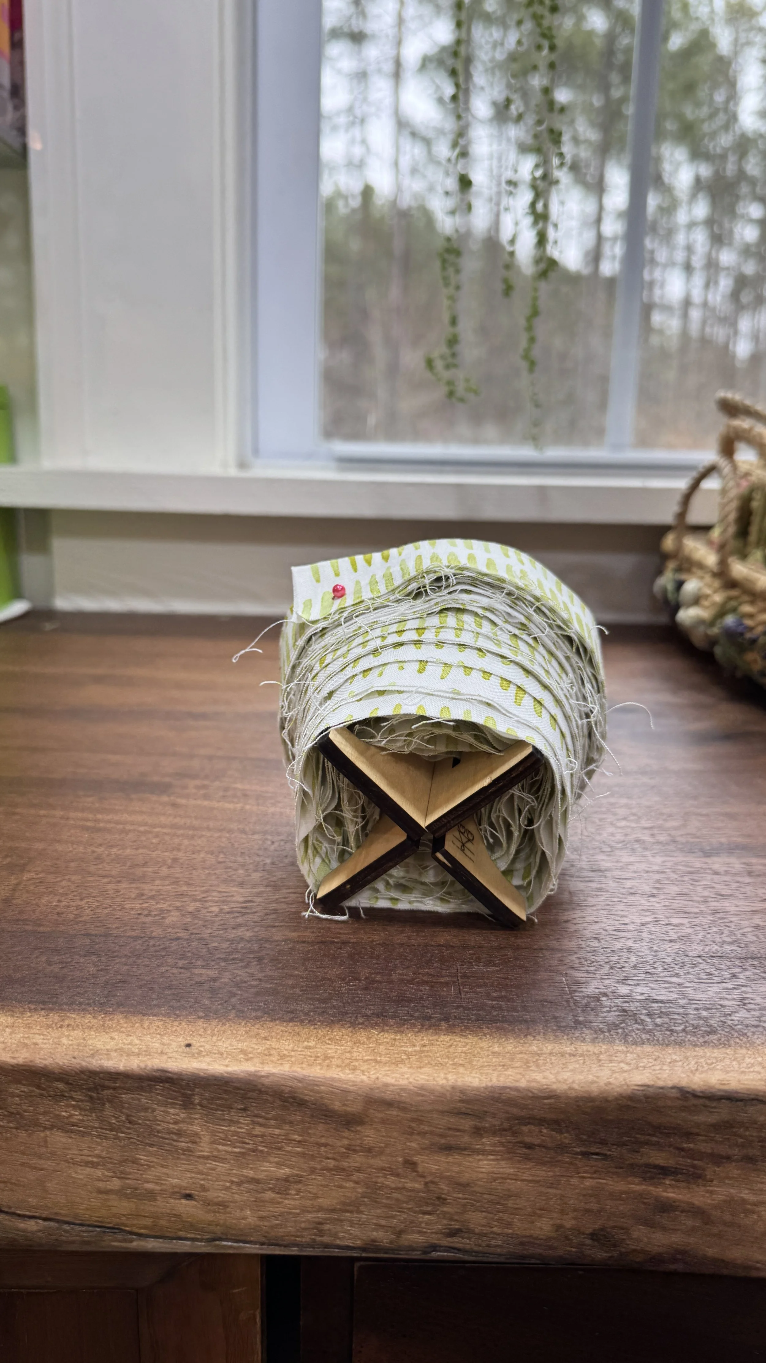 Each binding spool is made from high quality hardwood then sanded and hand finished with food safe oil. Each individual Fat Cat is ½ in tall and 4 in wide. There is an opening cut in one Fat Cat that is 1/8 in wide and 2 in tall.